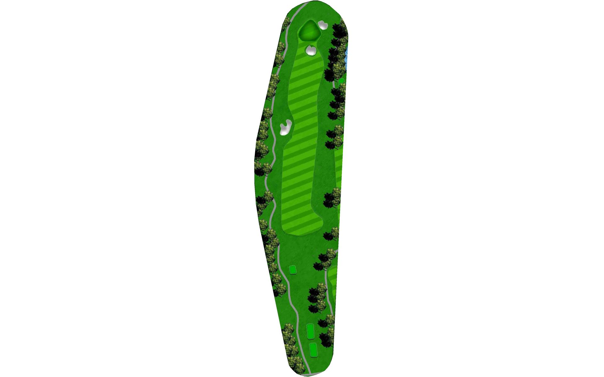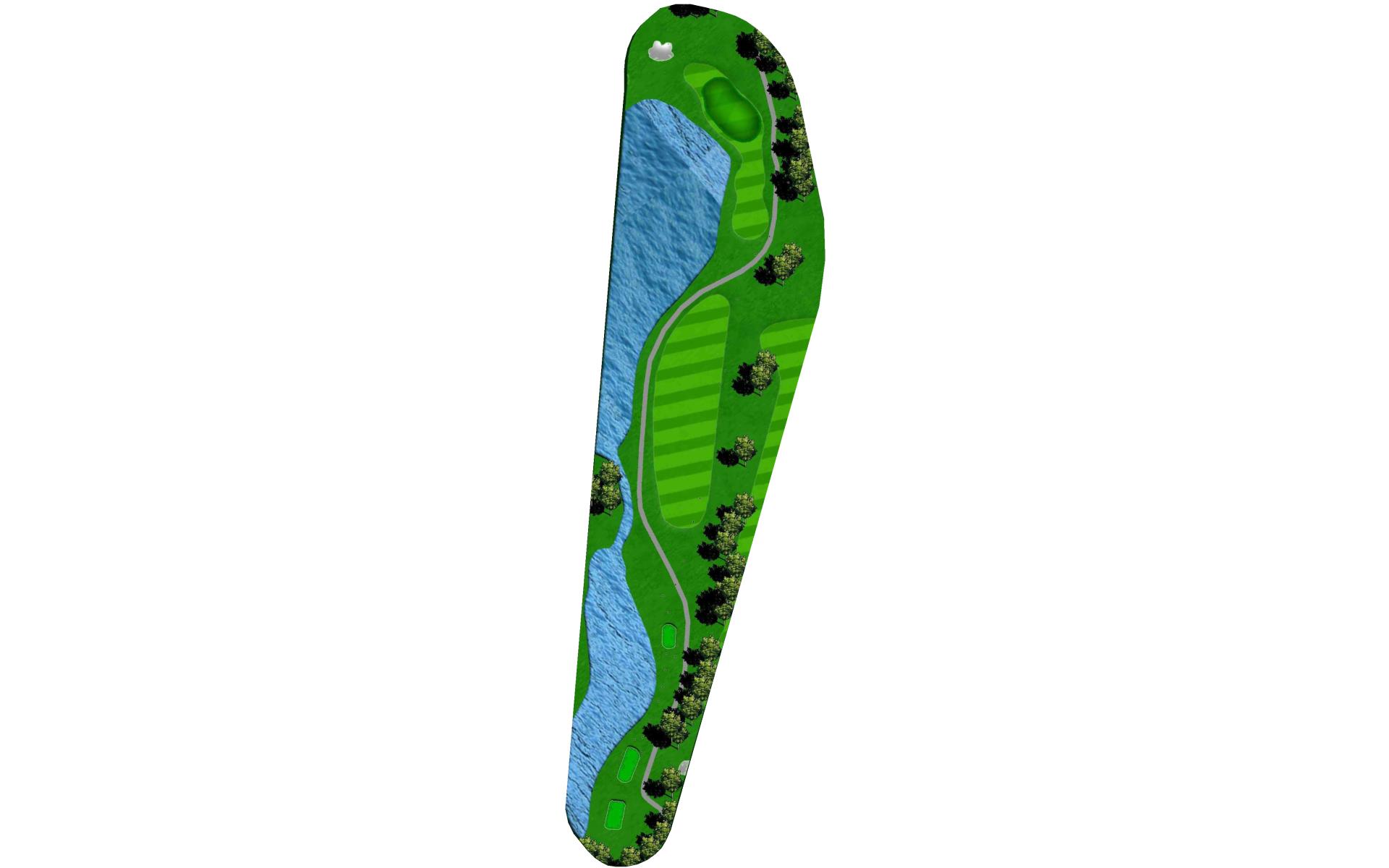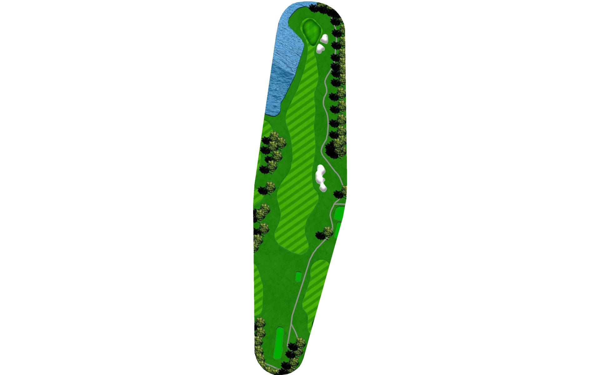 "Patience", requires a layup off the tee for even the longest hitters. Players are then faced with a choice, go for the heavily guarded green or layup again and leave themselves with a wedge. 4 bunkers protect the front of the green while over the back and to the left is out-of-bounds.