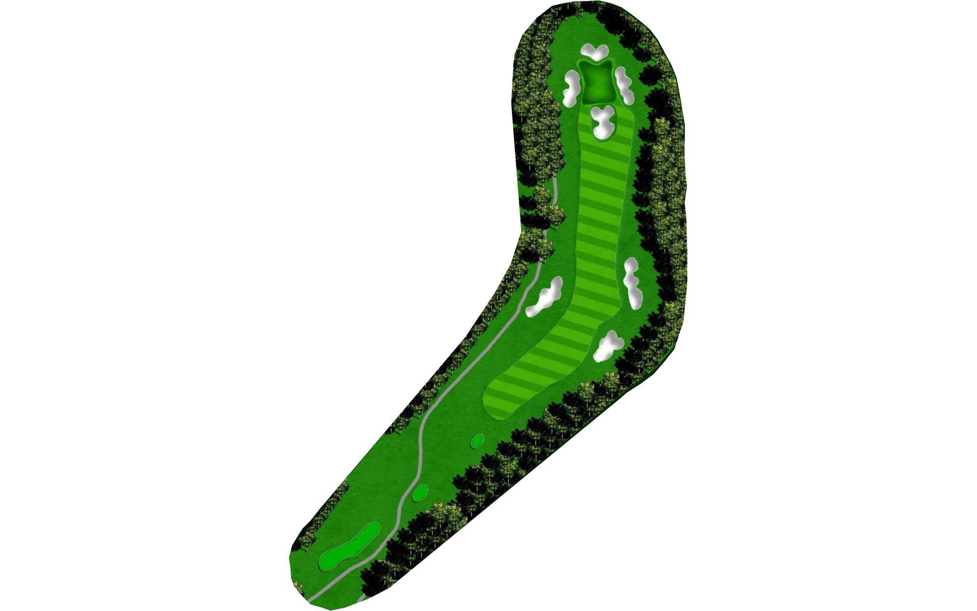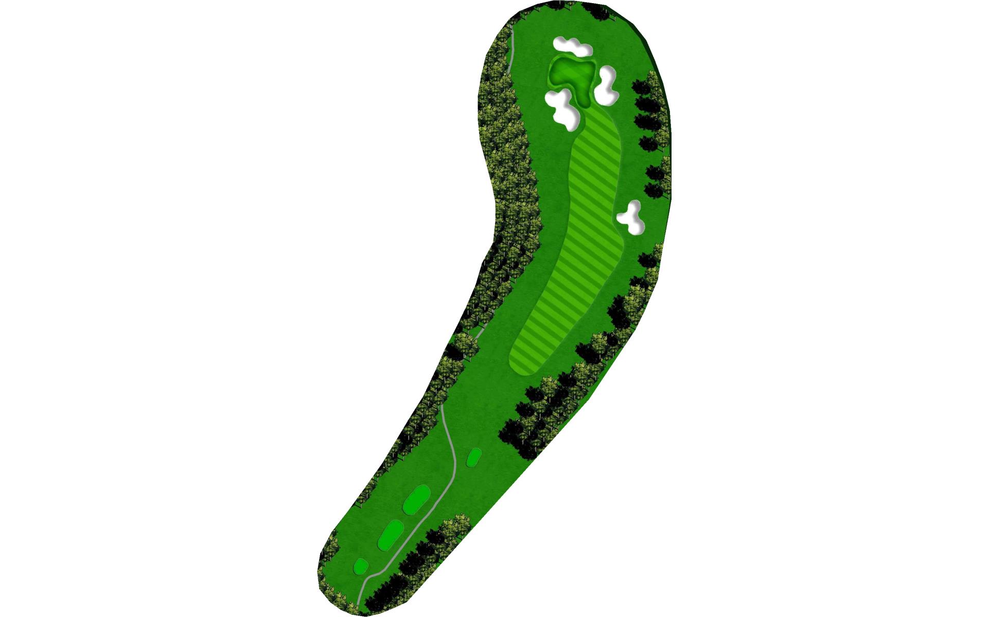 A dogleg right with fairway bunkers. Beware: hard right is out of bounds.